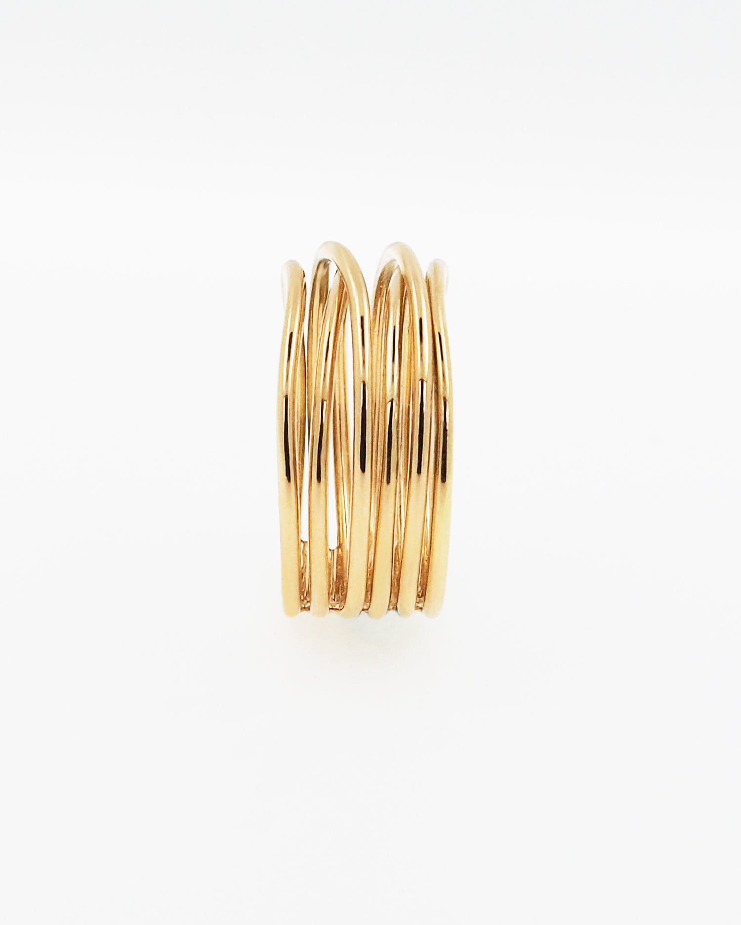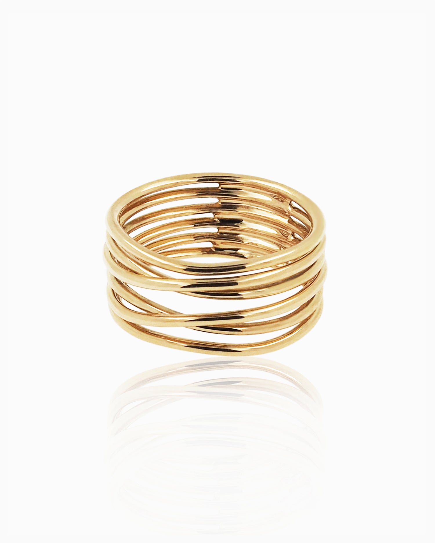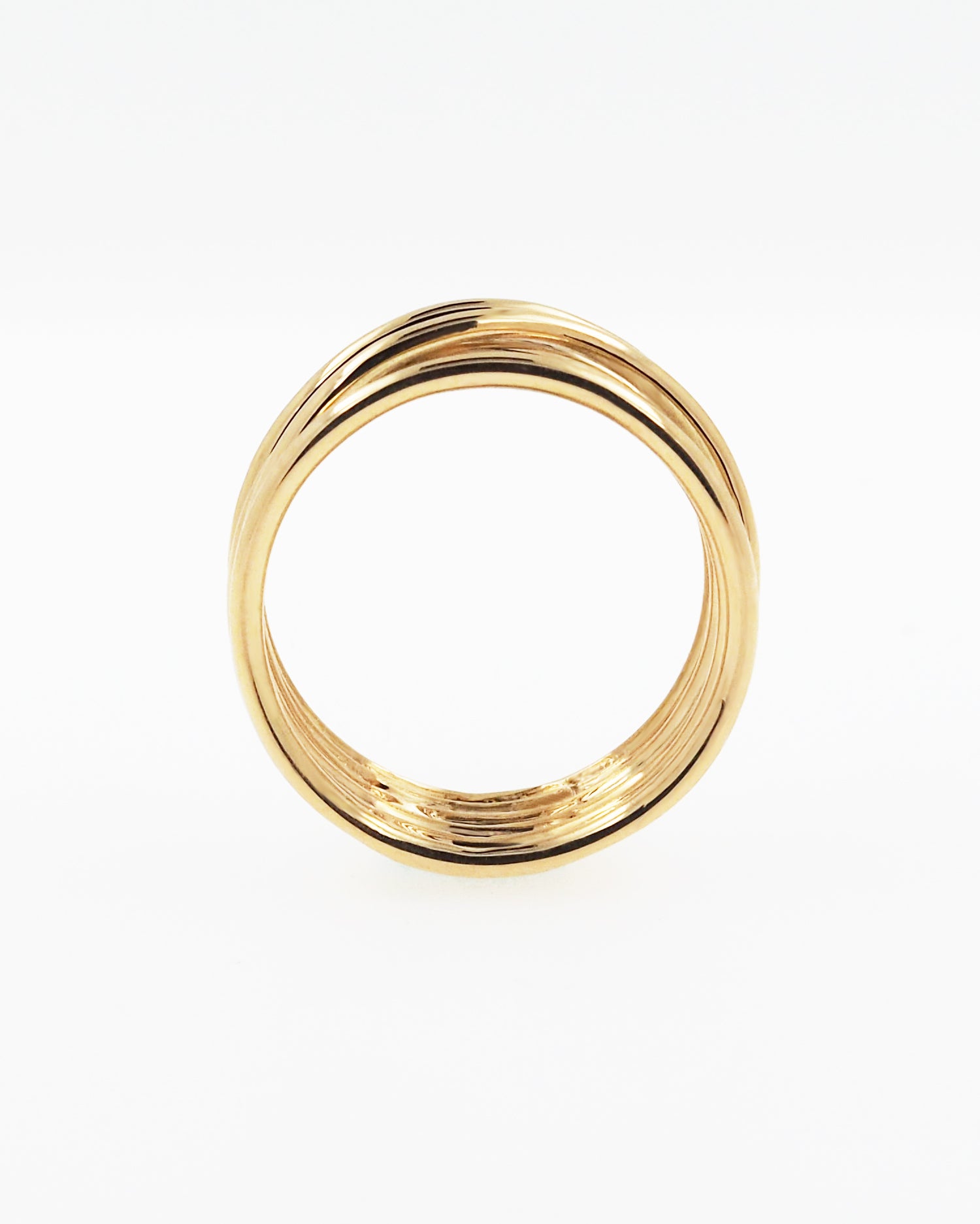 Elegància basada en la perfecta combinació de fils amb perfecta harmonia. Una peça ideal per emportar amb qualsevol look. Anell d'or groc de 18kt.