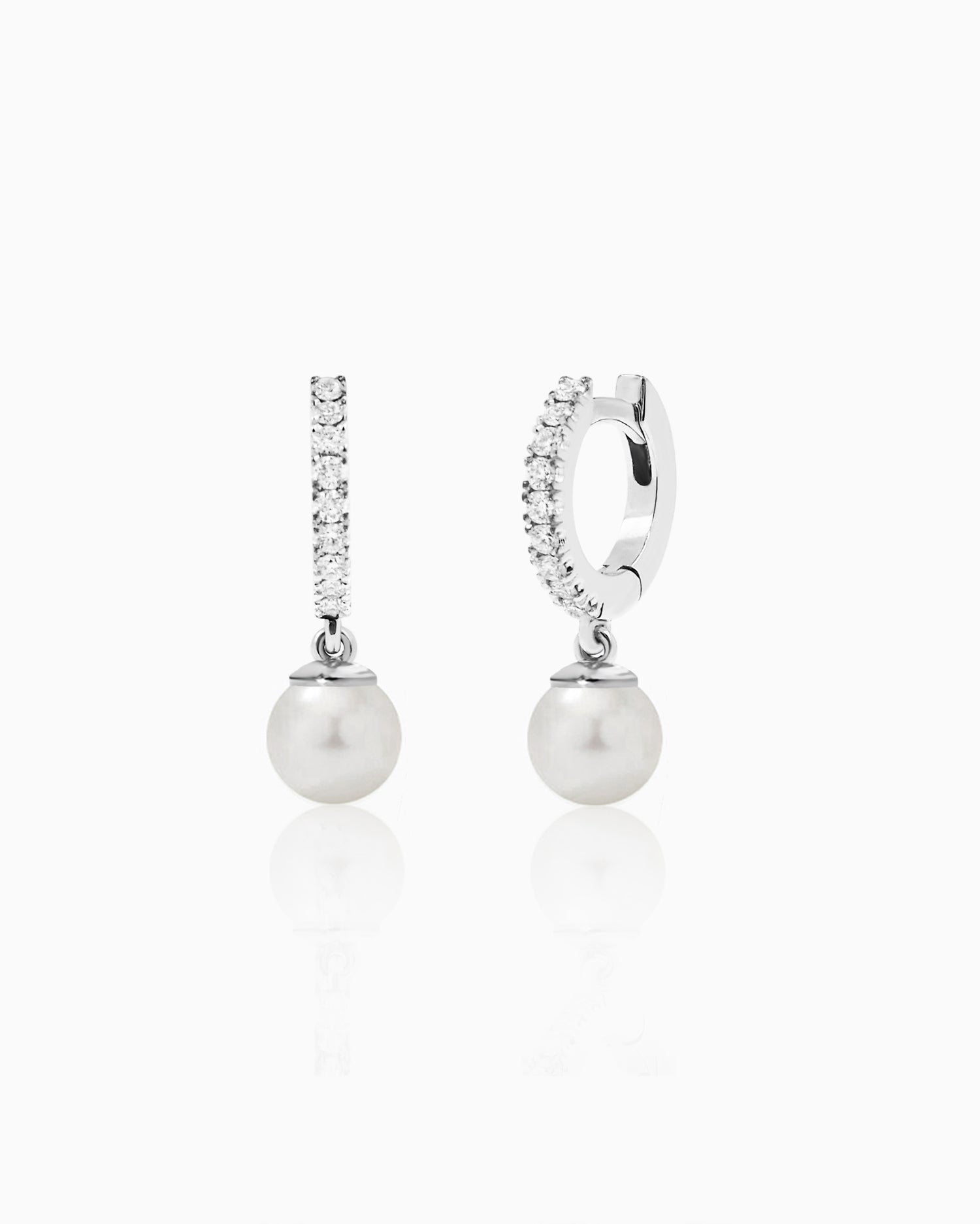 De línies simples i netes, aquests preciosos pendents són el complement perfecte per combinar i crear un look casual i elegant. Arracades d'or groc de 18kt i perles naturals. Pes total diamants 0,13ct. Color Diamant: FG. Puresa VS