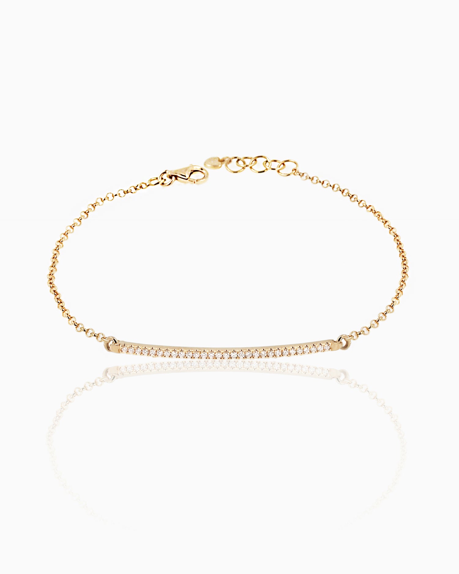 Un petit diamant es dibuixa dins un cercle de proporcions perfectes. Una peça essencial per completar el teu look diari. Polsera d´or groc amb un diamant talla brillant. Pes total a ct 0,07. Diamant: FG. Puresa VS