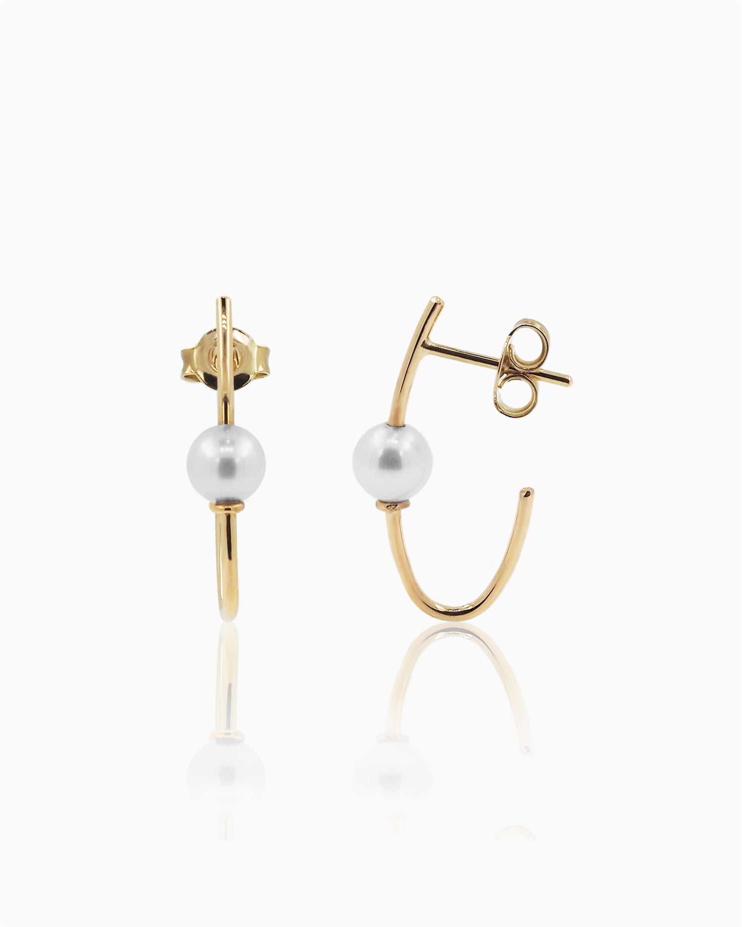 De línies simples i netes, aquests preciosos pendents són el complement perfecte per combinar i crear un look casual i elegant. Arracades d'or groc de 18kt i perles naturals.