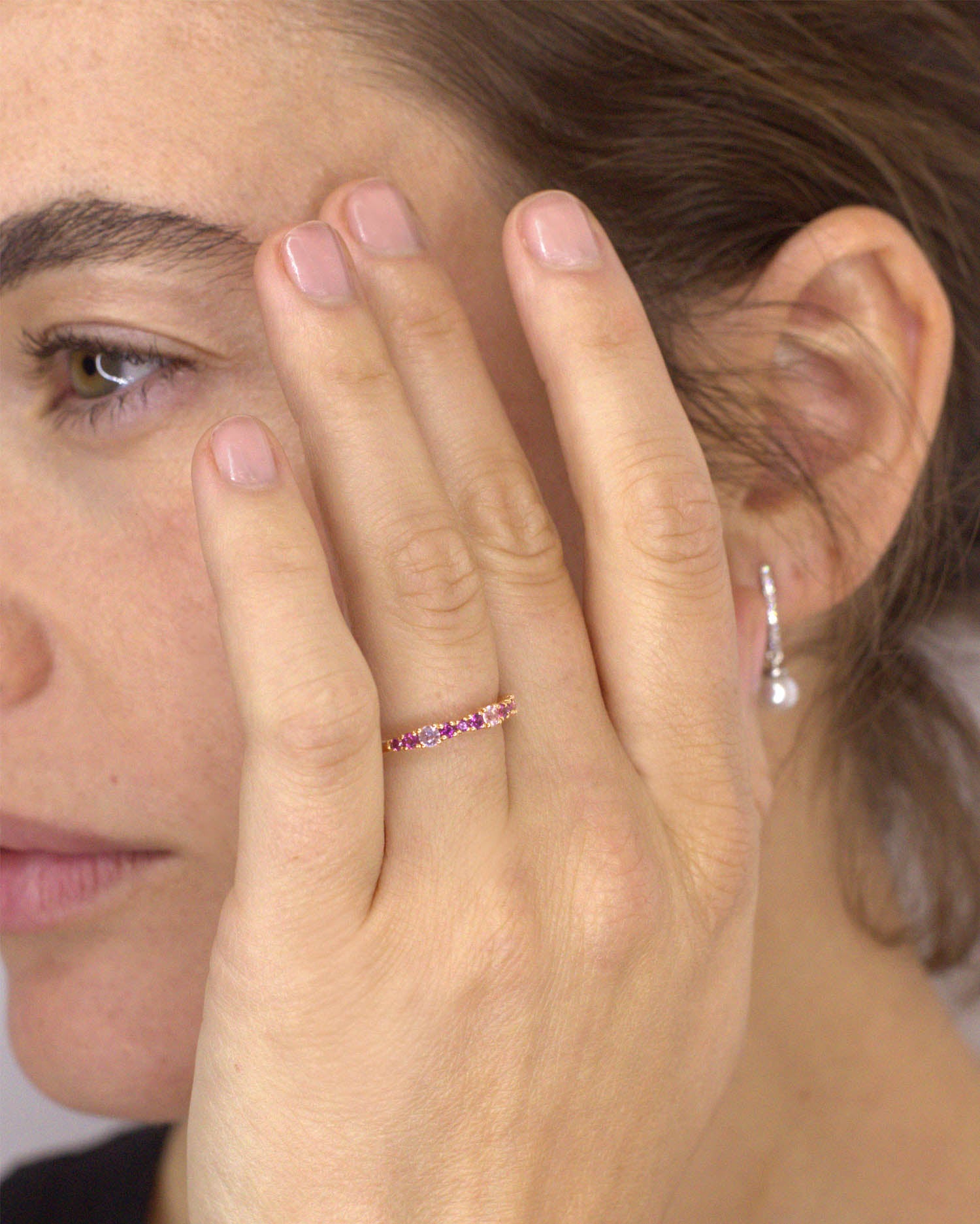Wrap your fingers in the enchanting beauty of Sendra Rosé. With a line of soft and elegant stones, this essential and contemporary half-weave ring will make you shine on any occasion. Discover the perfect combination of elegance and modernity with Sendra Rosé.