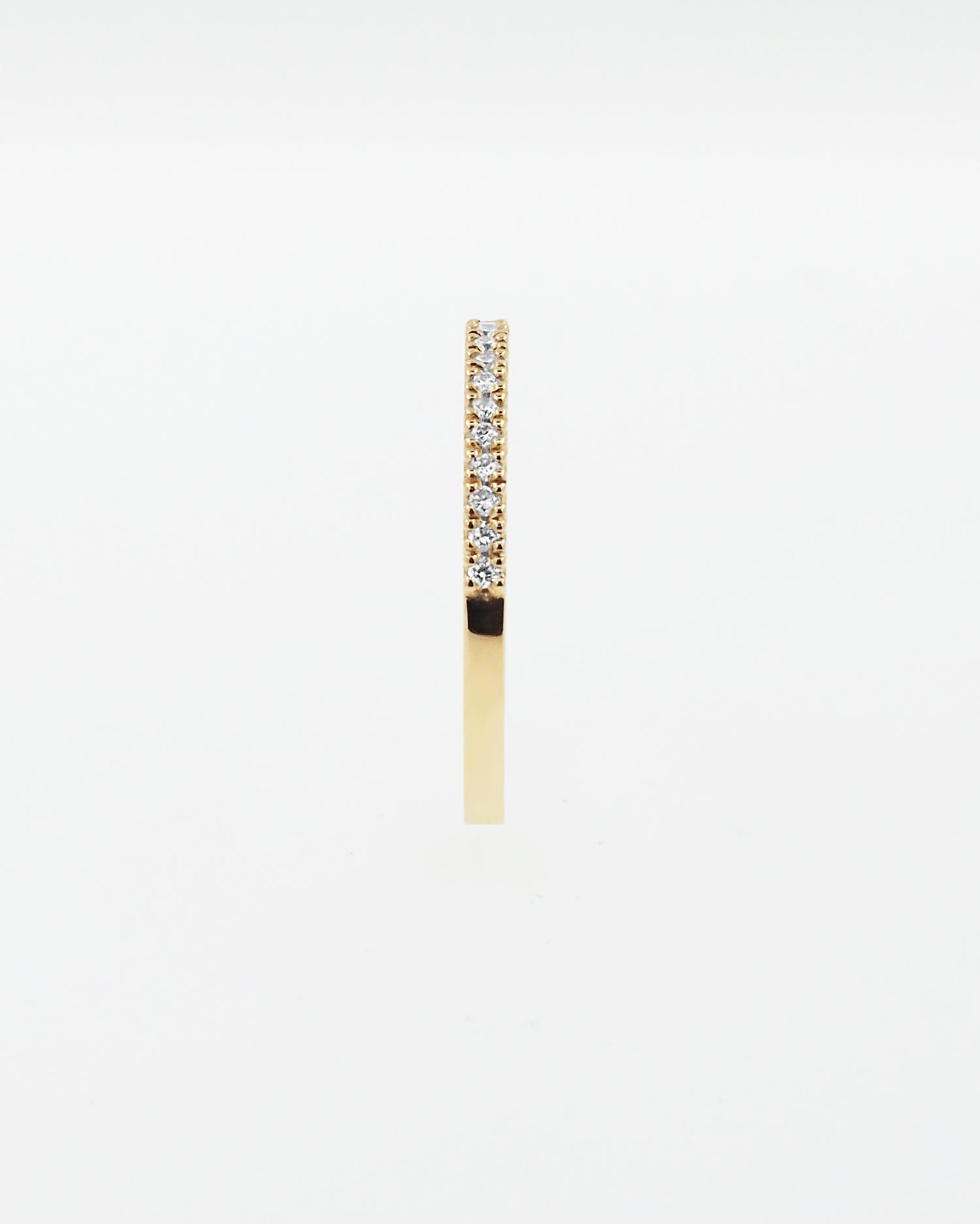 Our Essential ring is simple and elegant, reinventing a classic with a line of sparkling light. Made of 18kt white gold and brilliant-cut diamonds, it is the perfect complement to combine with other rings.