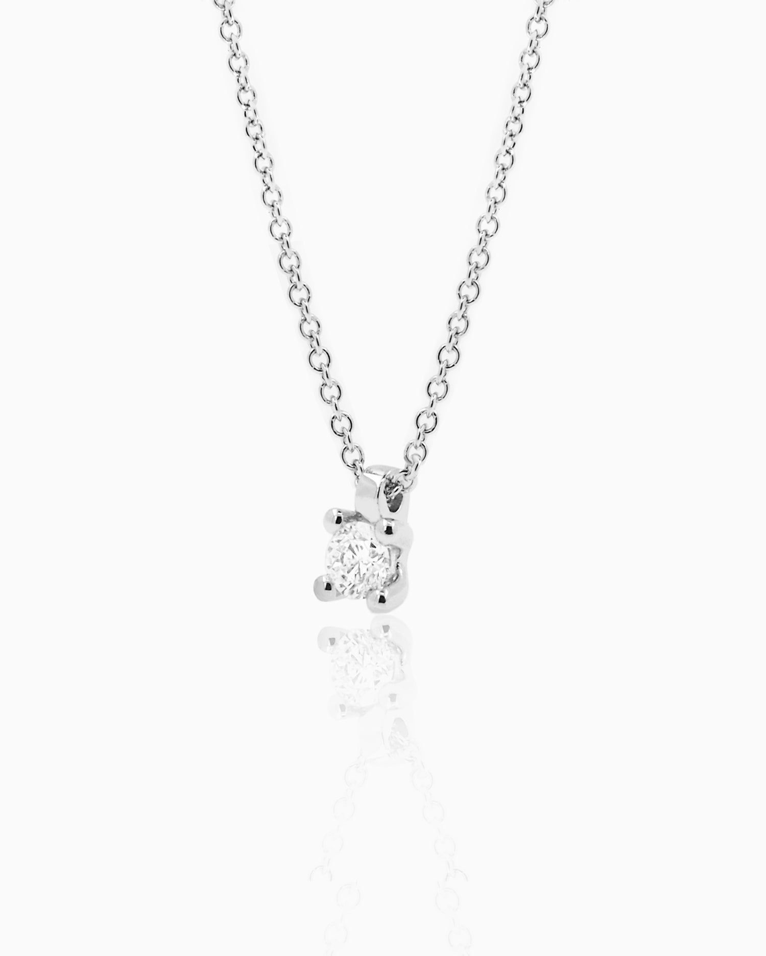 Simple, basic and timeless, this is our Metro pendant, a small bright point of light, in a minimalist style setting. Combine it with other pendants to create an elegant casual style. 18kt white gold pendant with brilliant cut diamond. Total weight in ct 0.15. (The price of the pendant includes the 18kt gold chain, 45cm long, with a ring interspersed at 42cm.) Diamond: FG. Clarity VS