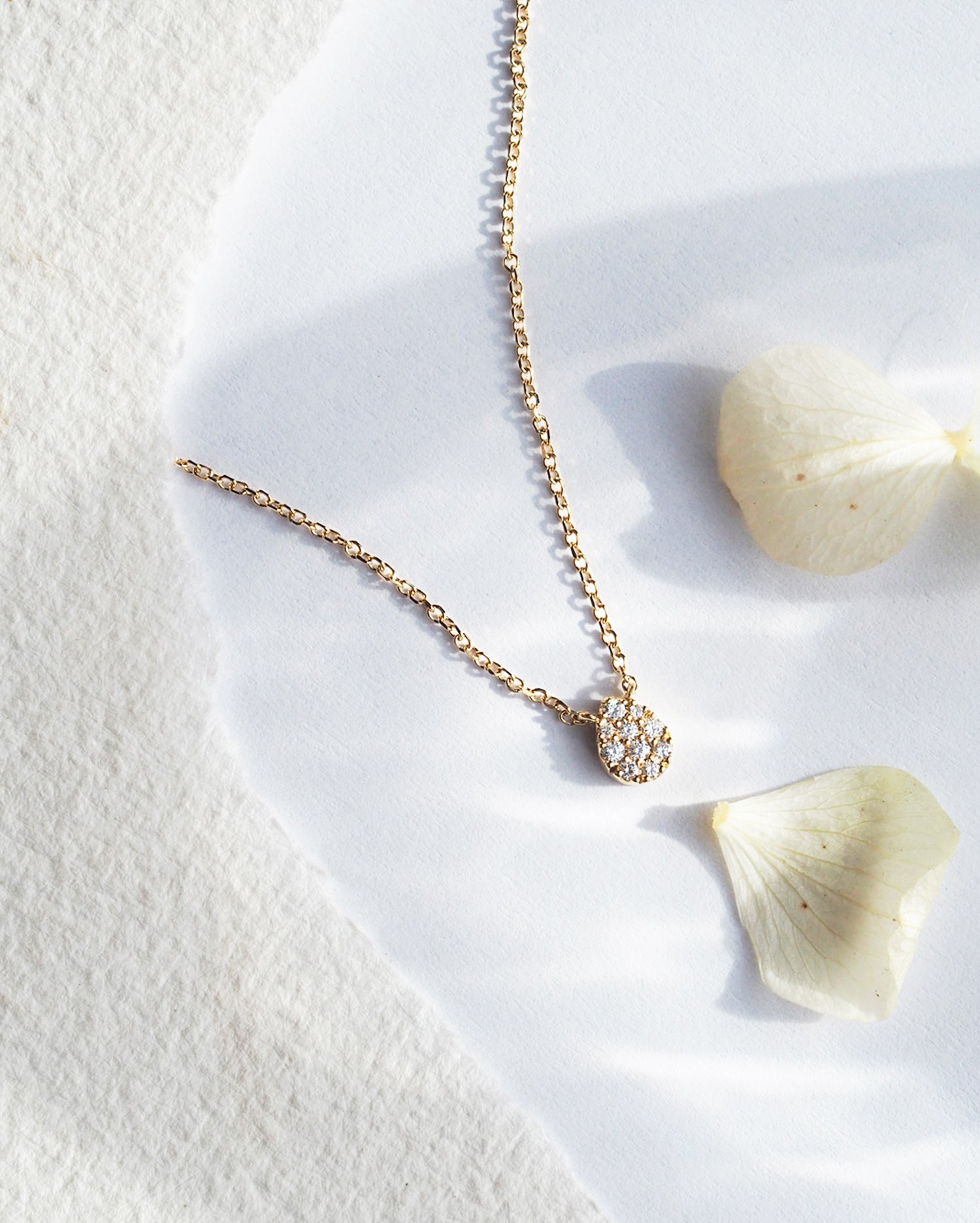 Discover the elegance and distinction of our Icon Necklace. With a small pavé of diamonds in a circle of white gold, it is the perfect piece to complement your daily style. An exclusive detail that never goes out of style.