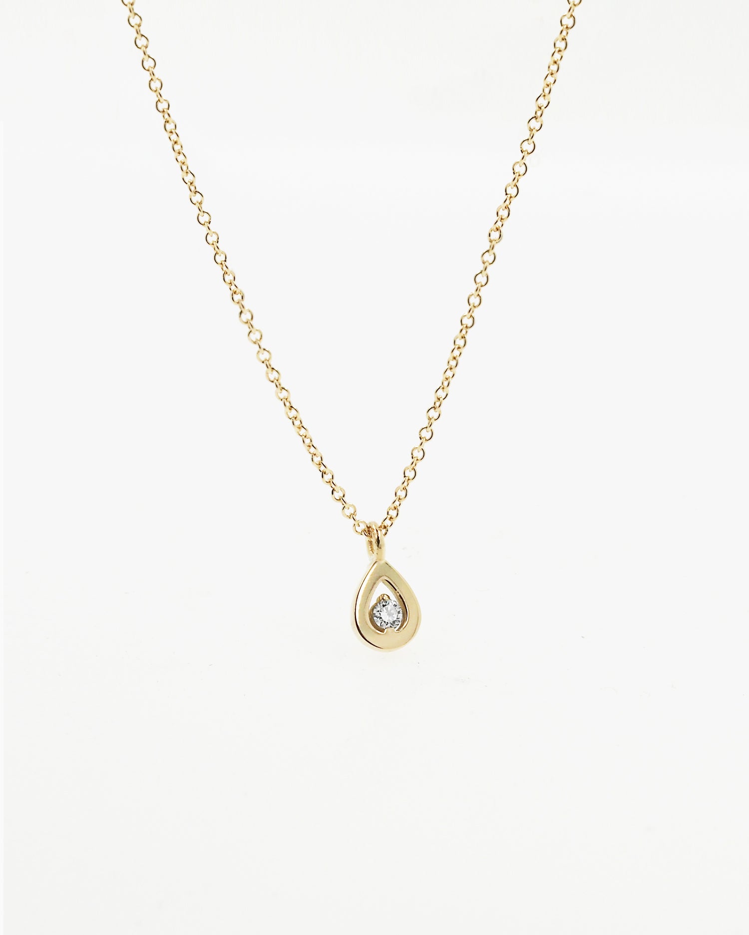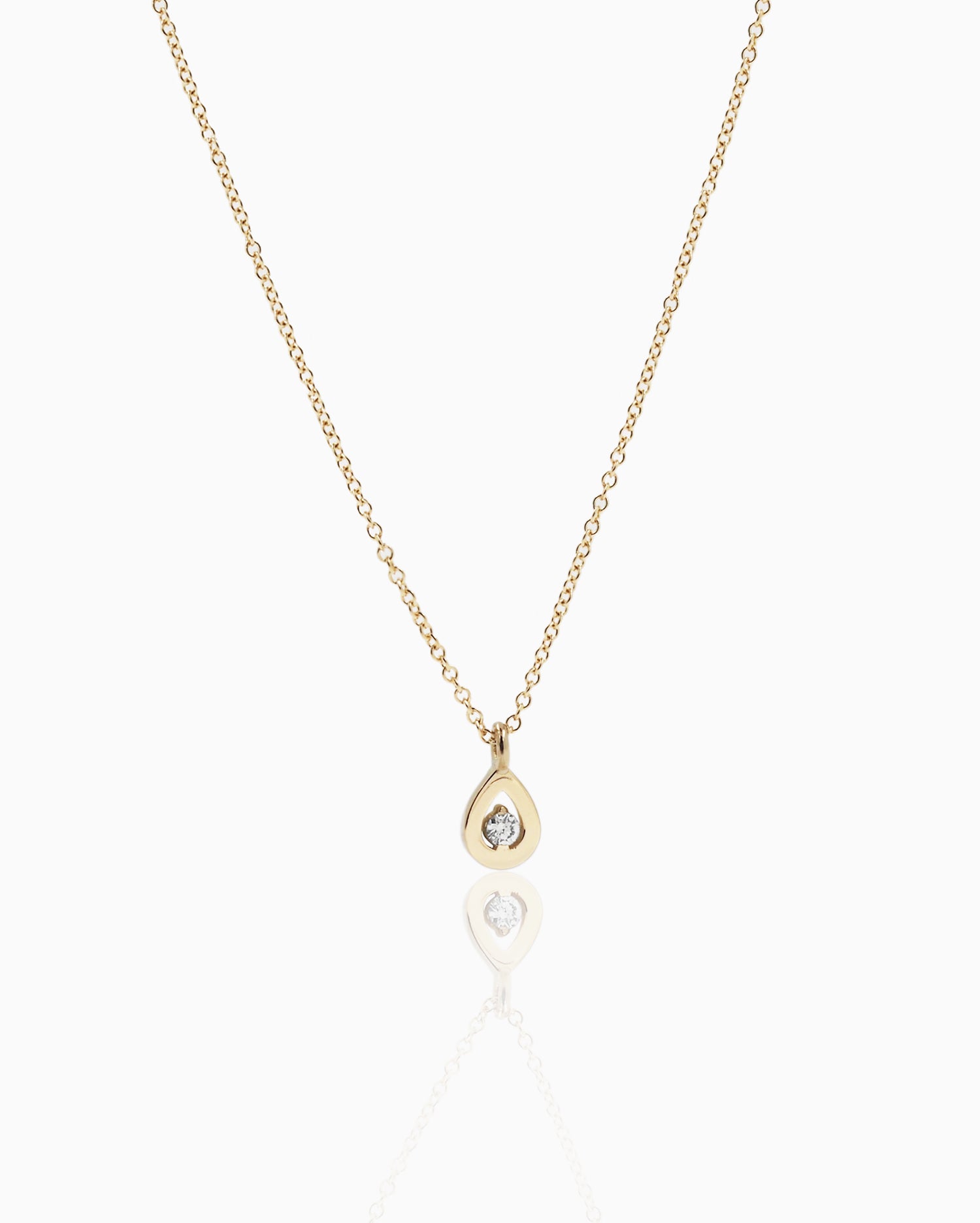This Gota necklace is simple, basic and timeless, perfect for adding a touch of elegance to any outfit. The Metro pendant features a small but brilliant diamond in a minimalist style setting, ideal for wearing in combination with other pendants for a casual but elegant look.