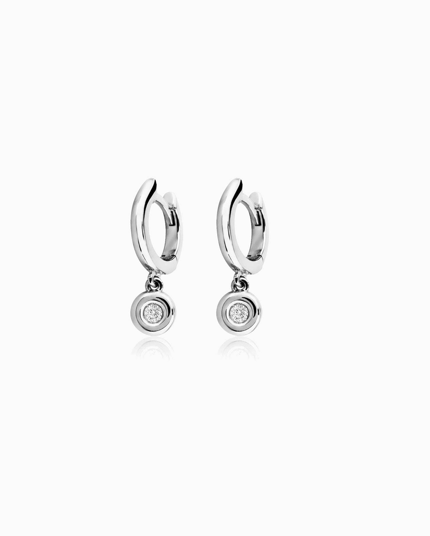 With simple and clean lines, these beautiful earrings with two moving diamonds are the perfect accessory to combine and create a casual and elegant look. 18kt white gold earrings with brilliant-cut diamonds. Total weight in ct 0.07. Diamond Color: FG. Clarity VS.
